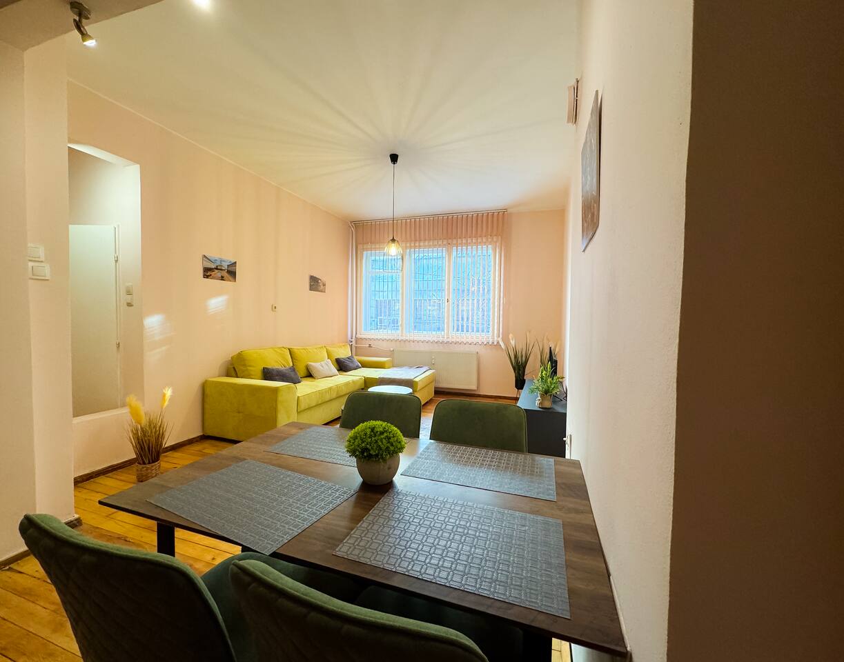 Добре дошли в нашия сладък и кокетен апартамент на улица Славянска! Този модерно обзаведен дом предлага перфектен и удобен хол, където можете да се насладите на своето време за релакс и забавления. Светлата и слънчева спалня ви поканя с уютна атмосфера и комфортно легло за приятен сън. Нашата напълно оборудвана кухня е идеална. Всичко това, съчетано с удобството на централното ни местоположение в историческия център на града, прави нашия апартамент идеален избор за вашия престой в София.