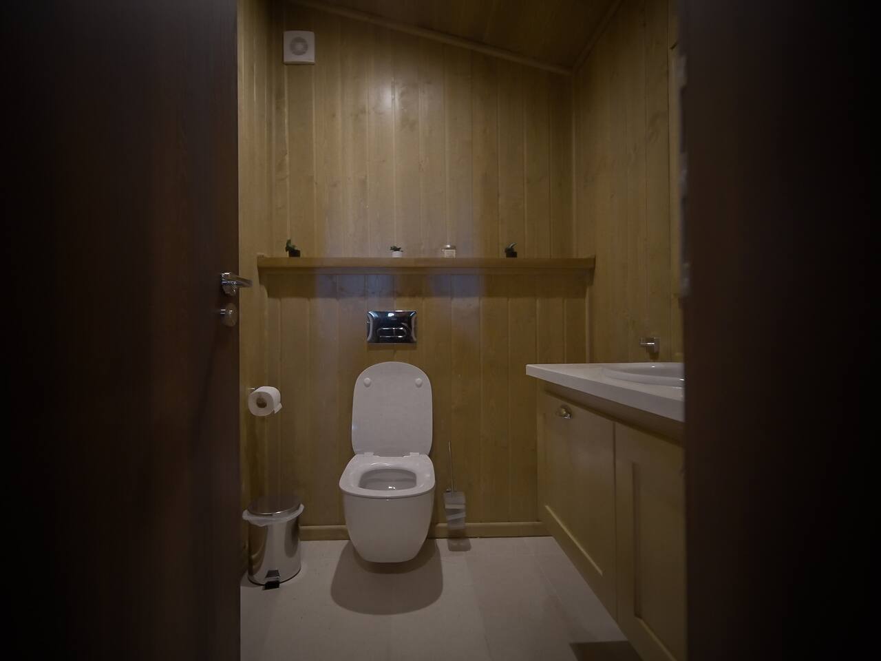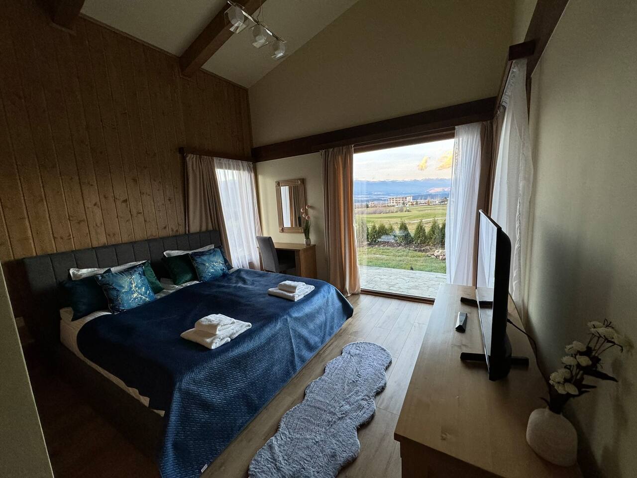 Всяка къща разполага с: - 3 спални, които осигуряват комфортен престой и незабравими гледки към голф игрището. - 2 бани с душ кабини, вана, тоалетни и биде. - 1 самостоятелна тоалента в холната част на къщата и - простотерн килер за складиране на куфари, ски екипировка и други пренадлежности. Пред всяка къща има безплатен паркинг за 2 автомобила.