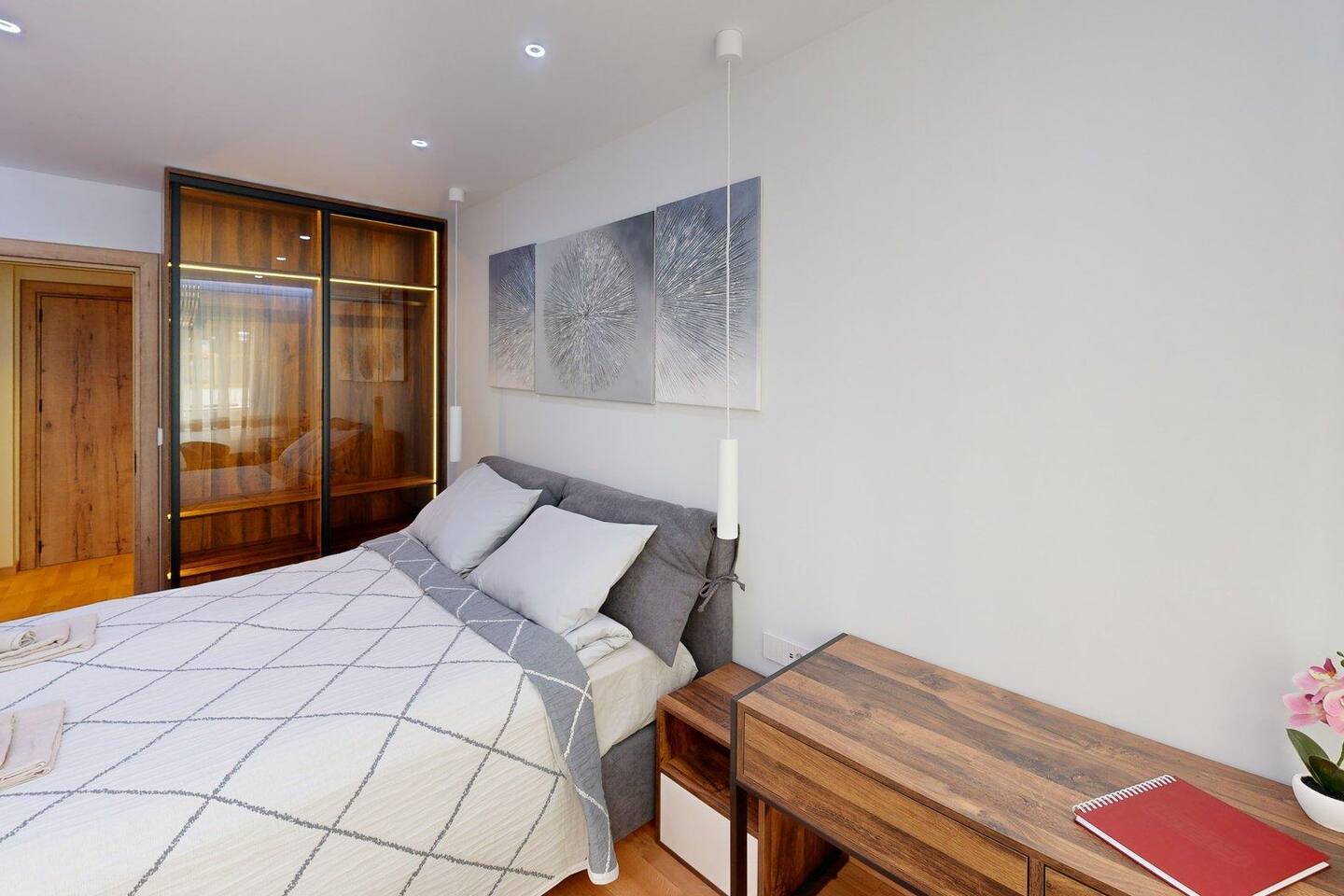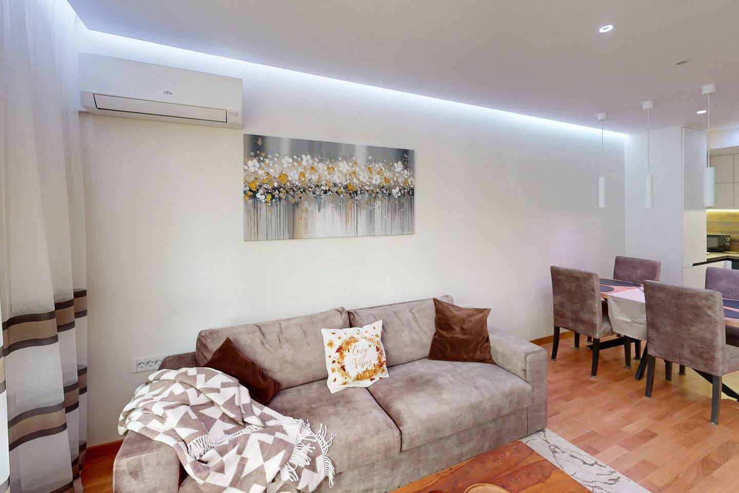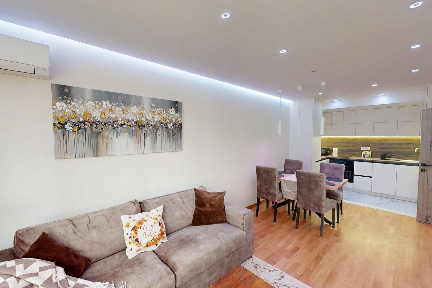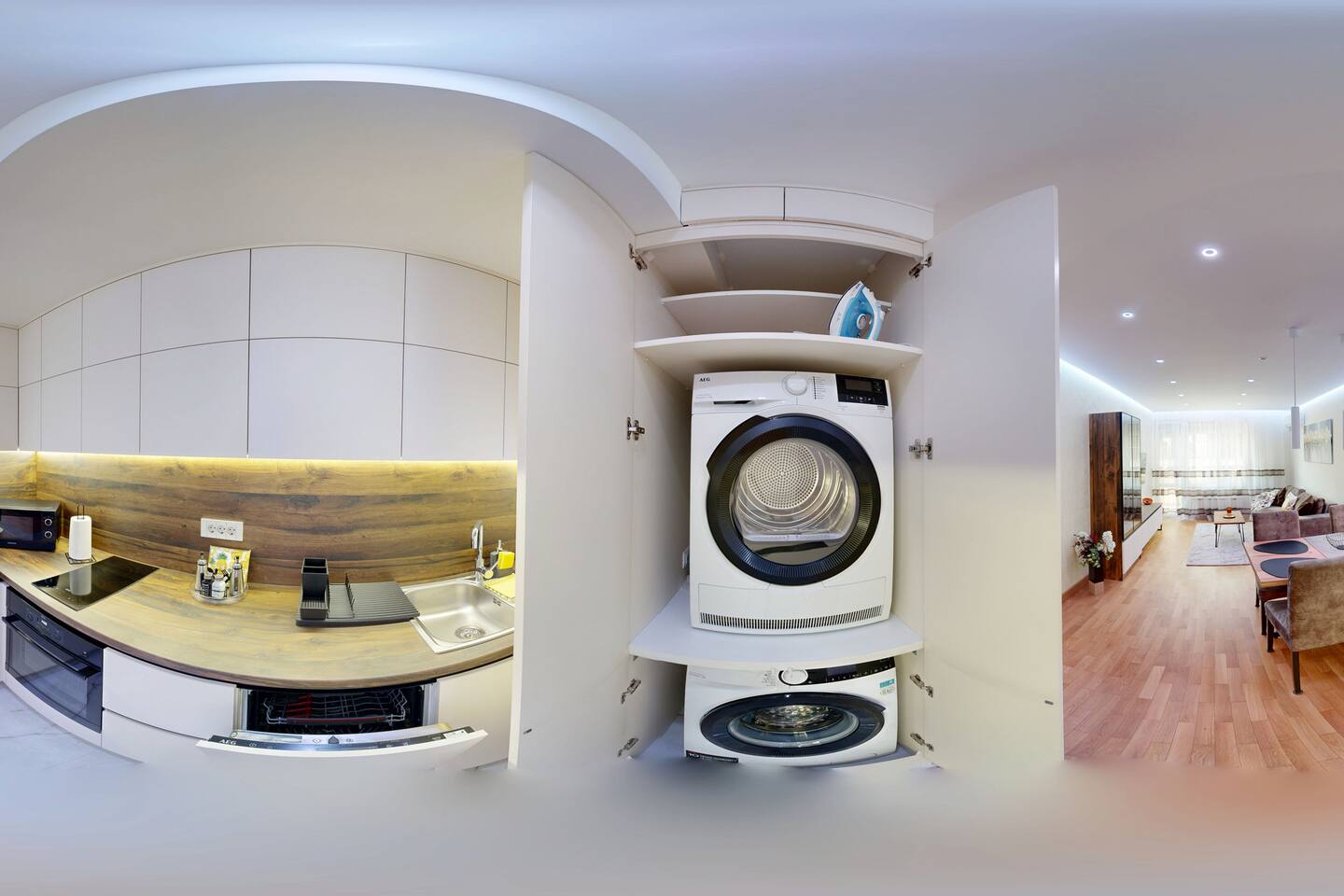 Насладете се на стилно пространство с една спалня, удобна дневна с диван, оборудвана кухня и баня с душ. Апартаментът предлага всичко необходимо за комфортен престой – включително пералня и сушилня.