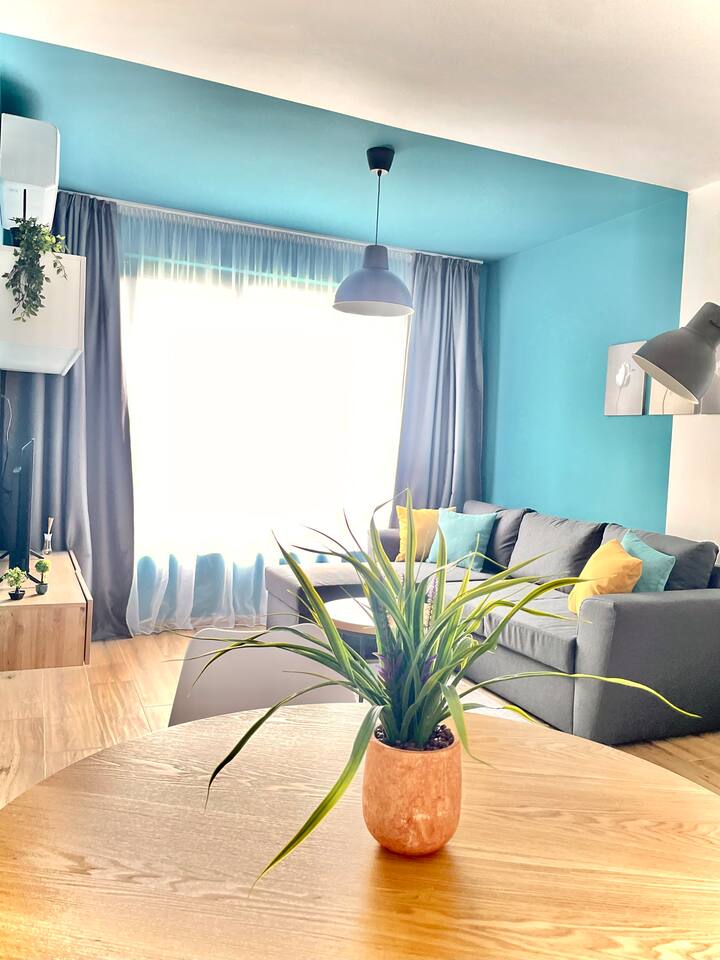 A stylish designer apartment, newly furnished and located in the heart of Sofia. This modern home offers everything needed for a comfortable stay. Enjoy a contemporary kitchen equipped with all essential appliances and a spacious dining area, perfect for gatherings with friends or family dinners. The bright living room features an incredibly comfortable sofa, ideal for relaxing after a long day. The cozy bedroom boasts a high-quality mattress, ensuring a perfect night's sleep, and a practical wardrobe with ample storage space. The modern bathroom is fully equipped for your comfort, featuring high-quality accessories and elegant design. Situated in a quiet and peaceful part of central Sofia, the apartment is just steps away from a metro station and public transport stops, making it extremely convenient for getting around the city. Located close to cafes, restaurants, and shops, this apartment offers the perfect blend of comfort, style, and convenience.